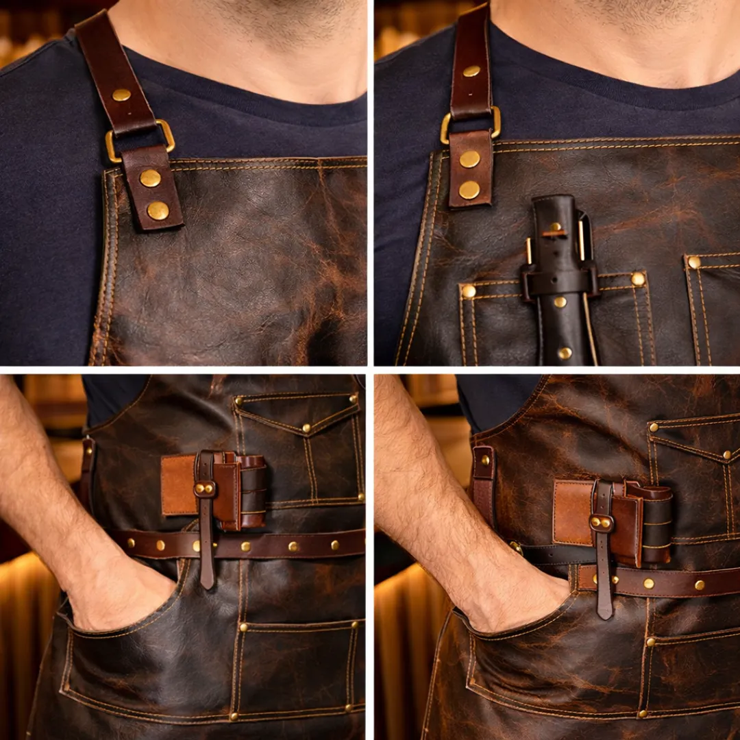 You’ll have everything within reach with multiple pockets and tool holders. The water-resistant leather protects against spills, and the reinforced stitching ensures long-lasting use. Whether working in a busy bar or mixing drinks at home, this apron is built for style and performance. Order now from our leather aprons collection and bring the perfect combination of practicality and sophistication to your craft!