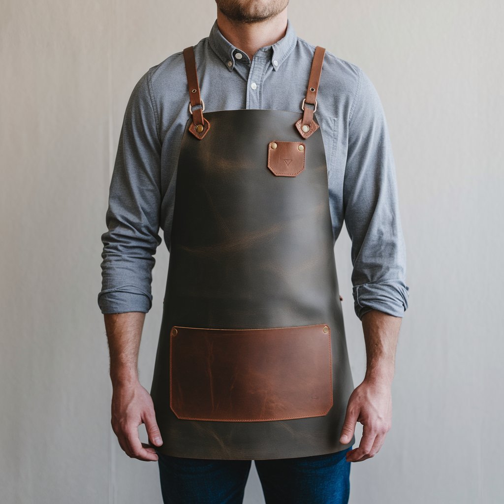 You can also check out our Carson 1 Pocket Tan Crazy Horse Leather Apron for a stylish alternative in a classic tan finish. Upgrade your workspace with this reliable, easy-to-wear apron that combines comfort, durability, and functionality. Buy the Bishop 1 apron now and get free shipping.