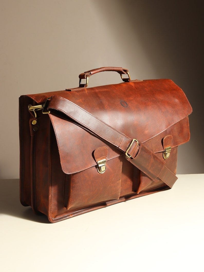 Brown Leather Satchel Messenger Bag for Men – Vintage Leather Laptop Bag