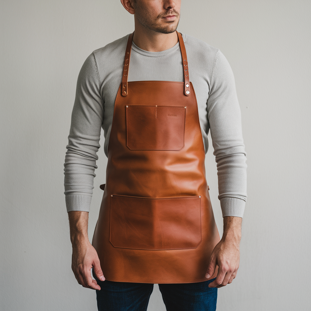 The leather apron fits well and feels premium.