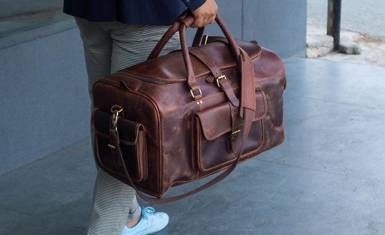 Leather Weekend Custom Large Duffle Bag for Men’s Travel & Vacations