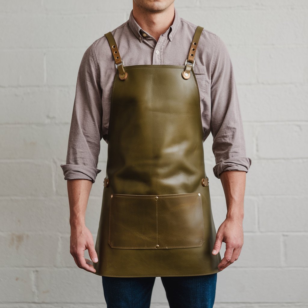 Alcott 2 Pockets Olive Green Cowhide Leather Apron