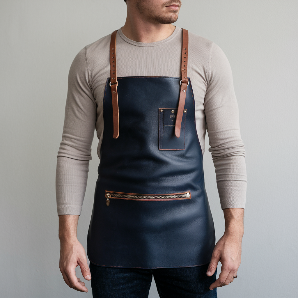 Finlay 1 Zipper Navy Cowhide Leather Apron