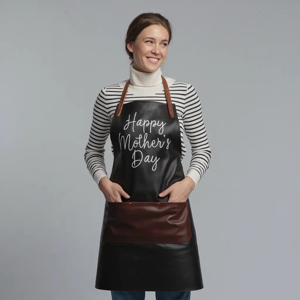 Happy Mother’s Day Cowhide Black Leather Apron