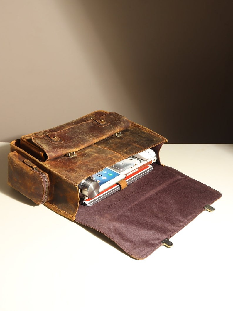 Elevate your professional style with our Personalized Handmade Vintage Leather Laptop Messenger Bag for Men, crafted from premium full-grain buffalo leather for unmatched durability and timeless appeal. Designed for both work and travel, it offers a padded compartment for laptops up to 15.6 inches, multiple pockets for organization, and sturdy brass hardware for lasting performance.Midway through your search for the perfect blend of style and function, consider our Personalized Leather Laptop Bag Buffalo Messenger a customer favorite for its exceptional craftsmanship and customization options. With its adjustable strap, comfortable handles, and classic vintage design, this messenger bag is not just for storage; it’s a statement. Perfect for daily use or thoughtful gifting.